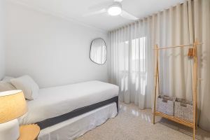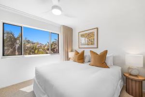 This bright and spacious three-bedroom, two-bathroom apartment is the perfect retreat for guests seeking comfort and relaxation. Located on the third floor with stair access this apartment can comfortably sleep 6. The inviting living area with its own air-conditioning features elegant timber floors and large windows that flood the space with natural light, creating a warm and welcoming atmosphere. The open-plan kitchen and dining area offer stunning ocean views, perfect for relaxed meals and entertaining. A flat screen TV with cable channels and complimentary Wi-Fi are also available.